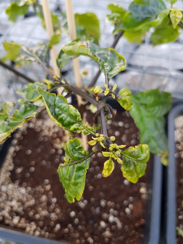 Habe gerade noch mal nachgesehen... Es betrifft von meinen 24 unterschiedlichen Pflanzen fast ausschließlich die Chinesen, die solche kruseligen, angefressenen oder auch fast gar keine Blätter mehr haben. Wäre schon interessant da mal eine Expertenmeinung zu bekommen. Hier mal ein Bild von meiner Pimenta Puma, auch nicht so pralle...