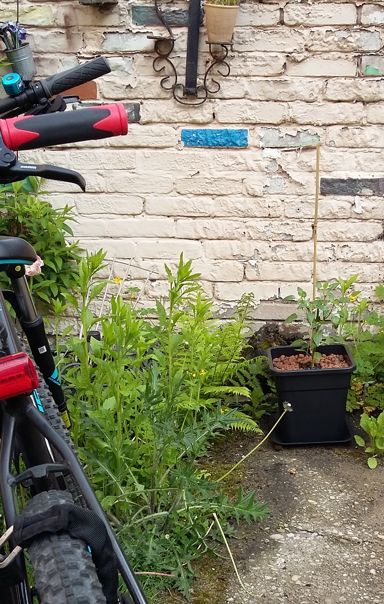 Fleißig bin ich weiter durch Dehner und Obi gestapft und habe Töpfe um mich geschart. Fürs Büro noch eine Reihe einfacher Kunststofftöpfe, teils rund, teils eckig, 3.2L, 5.8L, 10L und 2x11L, terracotta-ähnliche Farben (heller gibts echt selten). Einer davon mit Wasserreservoir, dort habe ich auch beim Umtopfen Bewässerungsdocht "verlegt" um zu schauen wie gut das funktioniert. Ich werde berichten