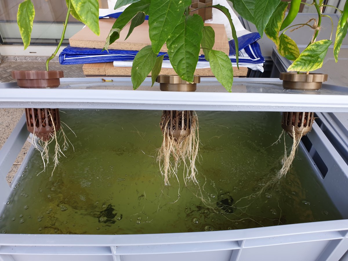 Die Pflanzen stehen seit drei Monaten auf auf einem Balkon auf der Südseite. In der Tiefwasserkultur sind sie seit 1 1/2 Monaten.