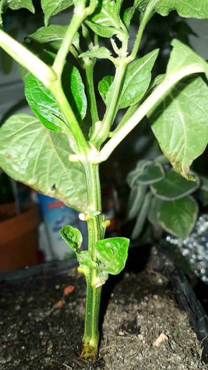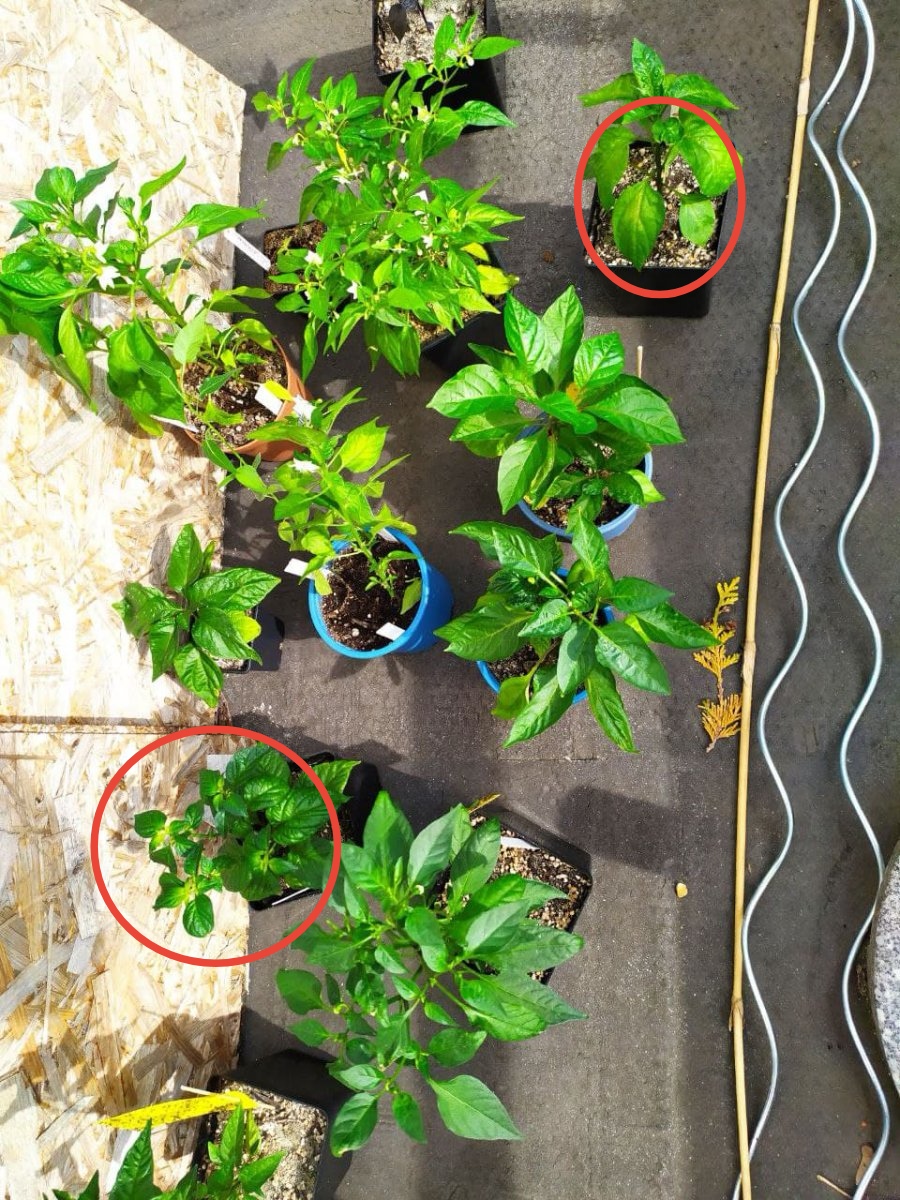 Beim ersten Bild die linke Chili, da kann ich sagen, dass das eine Pockmark Orange ist und die neuen Blätter da immer sehr hellgrün-gelblich kommen und dann relativ flott nachdunkeln, das ist also normal, bei der zweiten und dem zweiten Bild hast du aber vermutlich recht. Generell habe ich ein paar Blätter gehabt, die sich gekräuselt haben, da die auch teilweise Ödeme hatten habe ich das dann auf Trauermücken und Luftfeuchtigkeit und Wasserhaushaltsprobleme geschoben, war etwas blöd von mir nicht ganz genau hinzuschauen. Der Groschen ist bei mir erst gefallen, als ich die verkümmerten Jungtriebe gesehen habe.