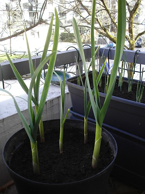 Der ebenfalls im November gesteckte, chinesische Soloknoblauch, treibt auch schon gut aus!