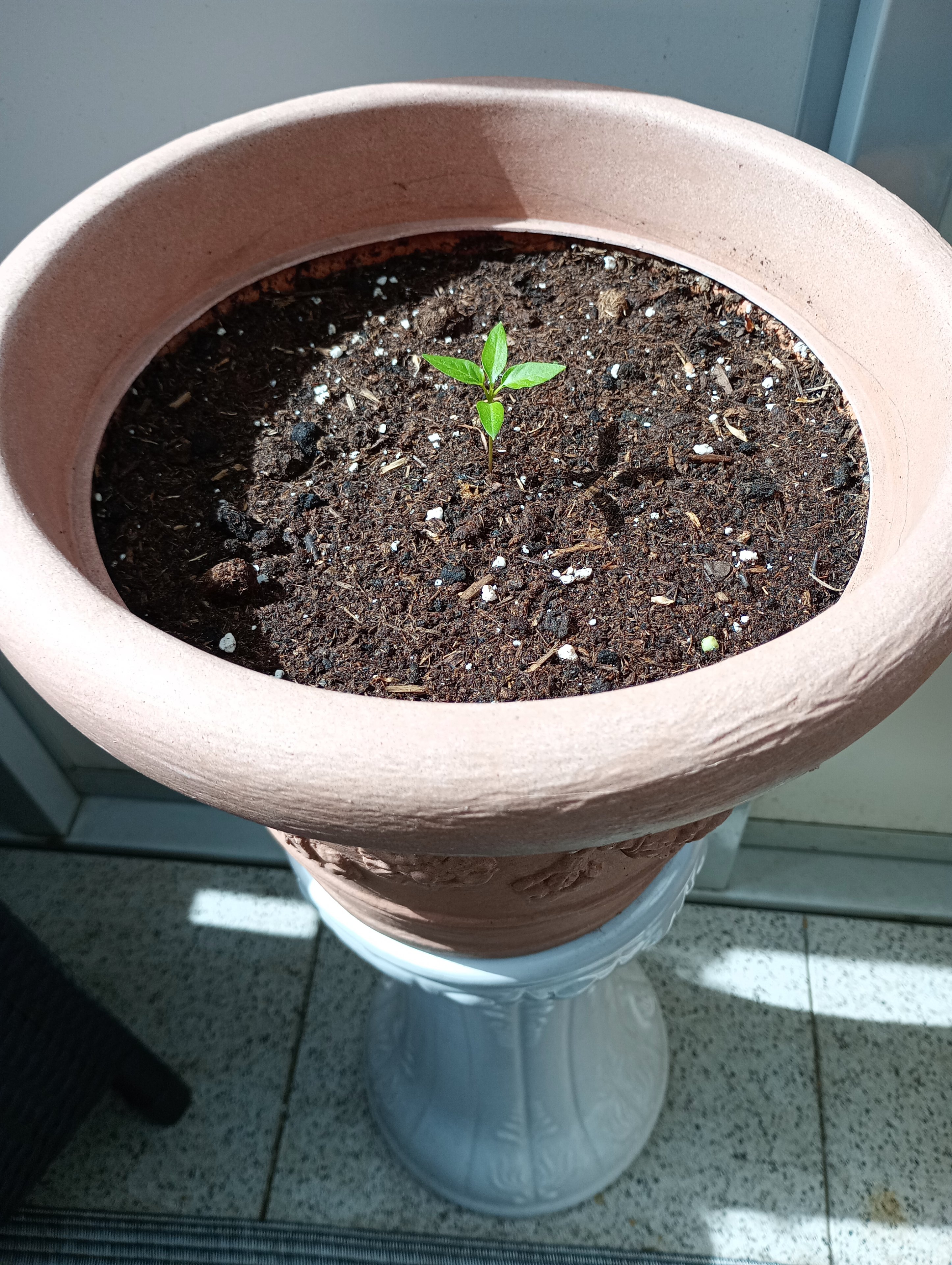 Eigentlich sollte es eine Kreuzung mit einer Orion Pepper sein. Leider hatten bis jetzt alle Pflanzen grünes Laub, diesmal waren von über 100 Pflanzen zwei Dunkle dabei.... alles klar 😜