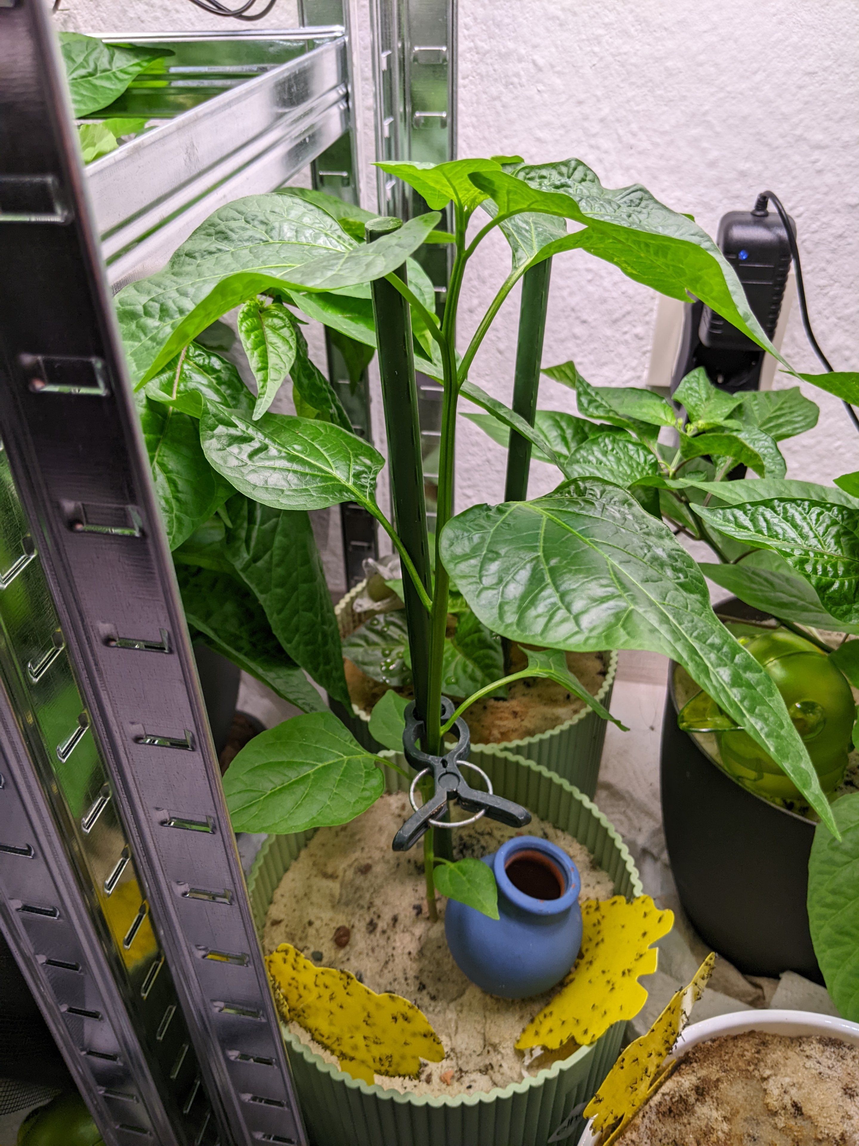 . Es geht so ziemlich mit allen Pflanzen gut voran, lediglich die Primotalii macht mir ein paar Sorgen, da sich ihre Blätter etwas gelb färben. Ich kann noch nicht ganz ausmachen, woran das liegen könnte, da alle Pflanzen die gleiche Mischung aus Kräutererde, Kokussubstrat, Tongranulat, Gesteinsmehl und organischen Komponenten bekommen haben und der Rest einen guten Eindruck macht. . .
