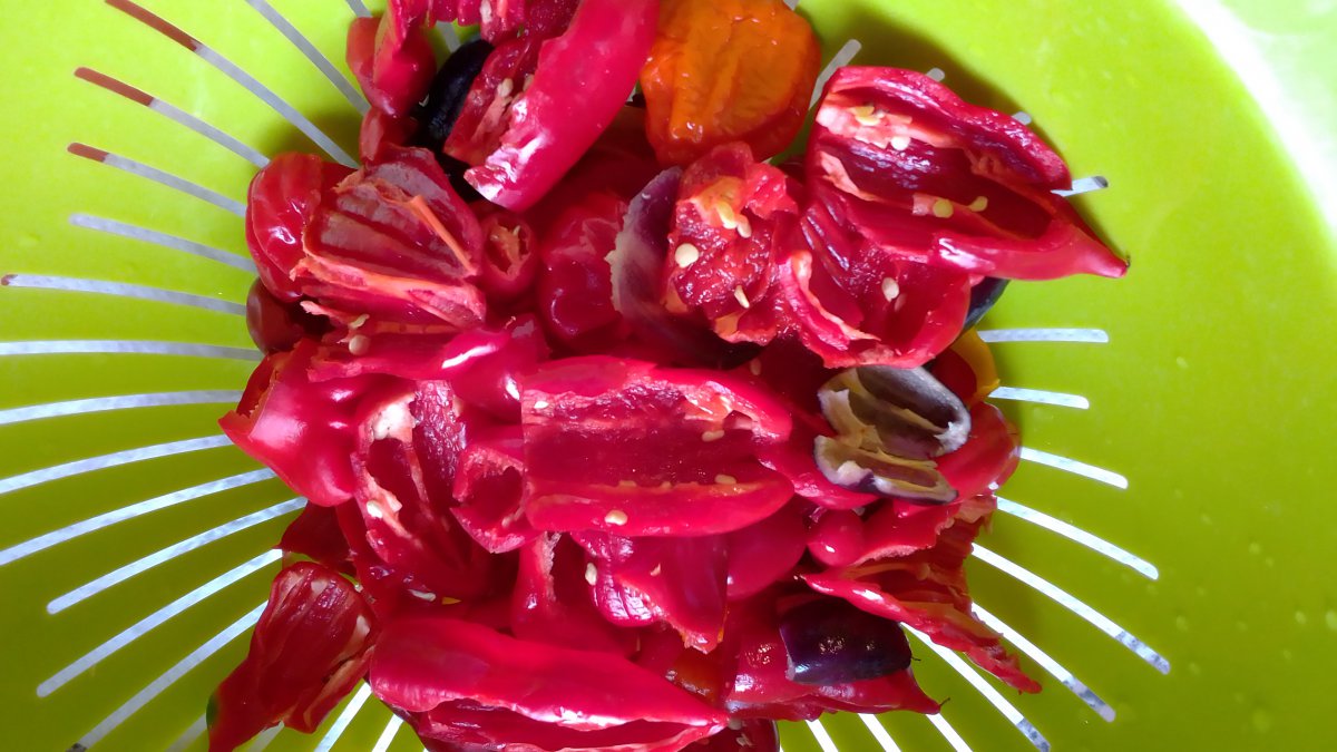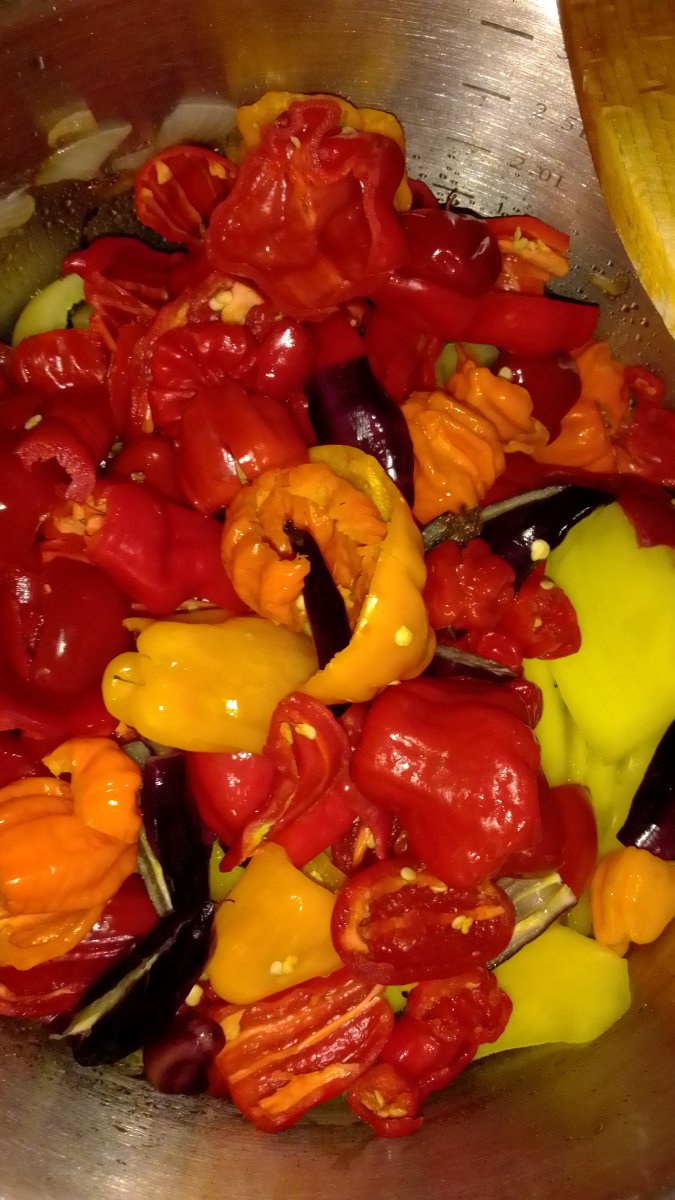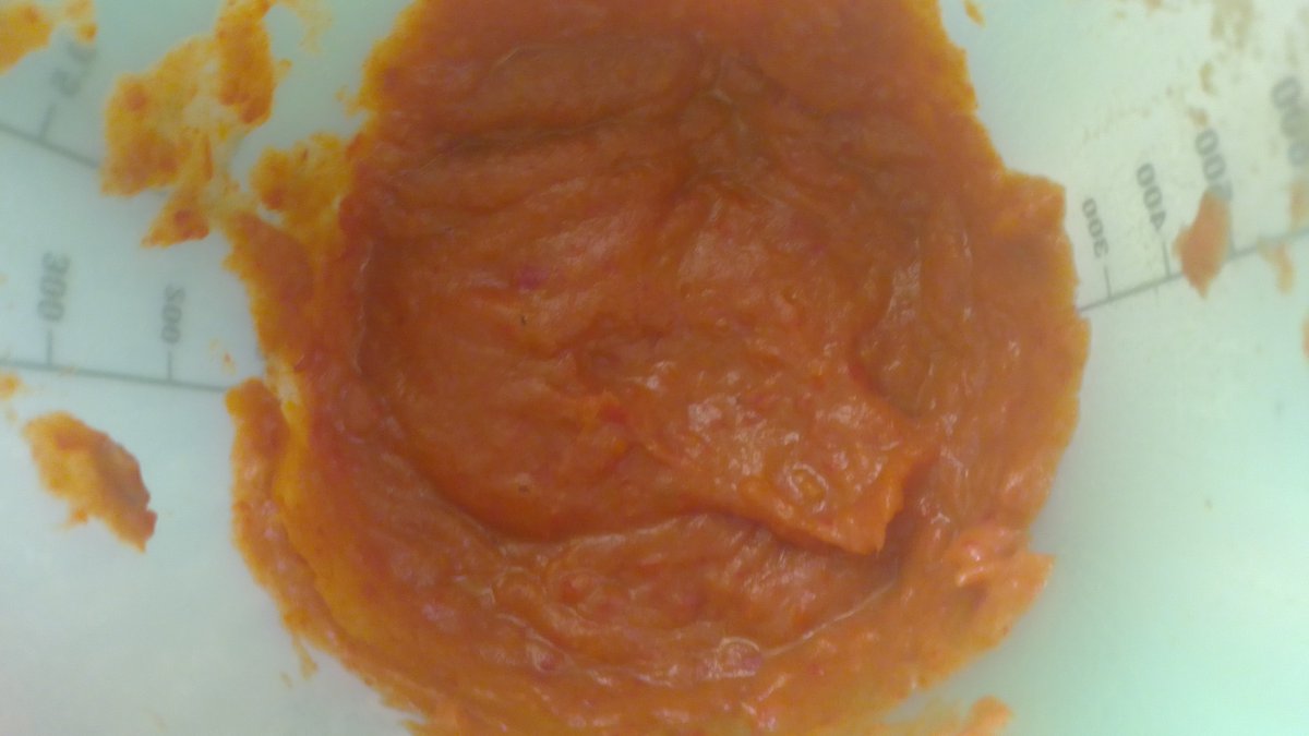 Die Masse nun nach Belieben nochmals ordentlich nachwürzen und auch das Öl sowie den Zitronensaft hinzufügen. Ich liebe die Kombination von süß und scharf und habe deshalb neben dem Zucker auch noch den türkischen Granatapfelsirup beigemischt. Abfüllen. Fertig.