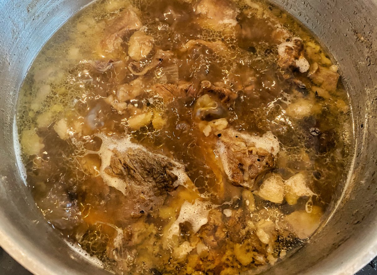 Dass es so schnell geht, war eigentlich nicht geplant, aber heute stand Hühner-Nudelsuppe auf dem Plan, die eigtl. Mutti nach Großmutters Art kocht. Aber da alle im Haushalt noch andere Reste gegessen haben, konnte ich mich zum Zubereiten der Suppe anbieten und zufällig die ein oder andere Komponente in den Topf fallen lassen — ich hatte eh alles da. Angeschwitzt habe ich das Ganze mit getrenntem Hühnerfett vom WE. Ja ... Huch. „Wo kommt der Anis Geruch her?“ „Ja, ist mir auch schon aufgefallen. Das ist bestimmt mein Tee. Komisch, wie der heute duftet“