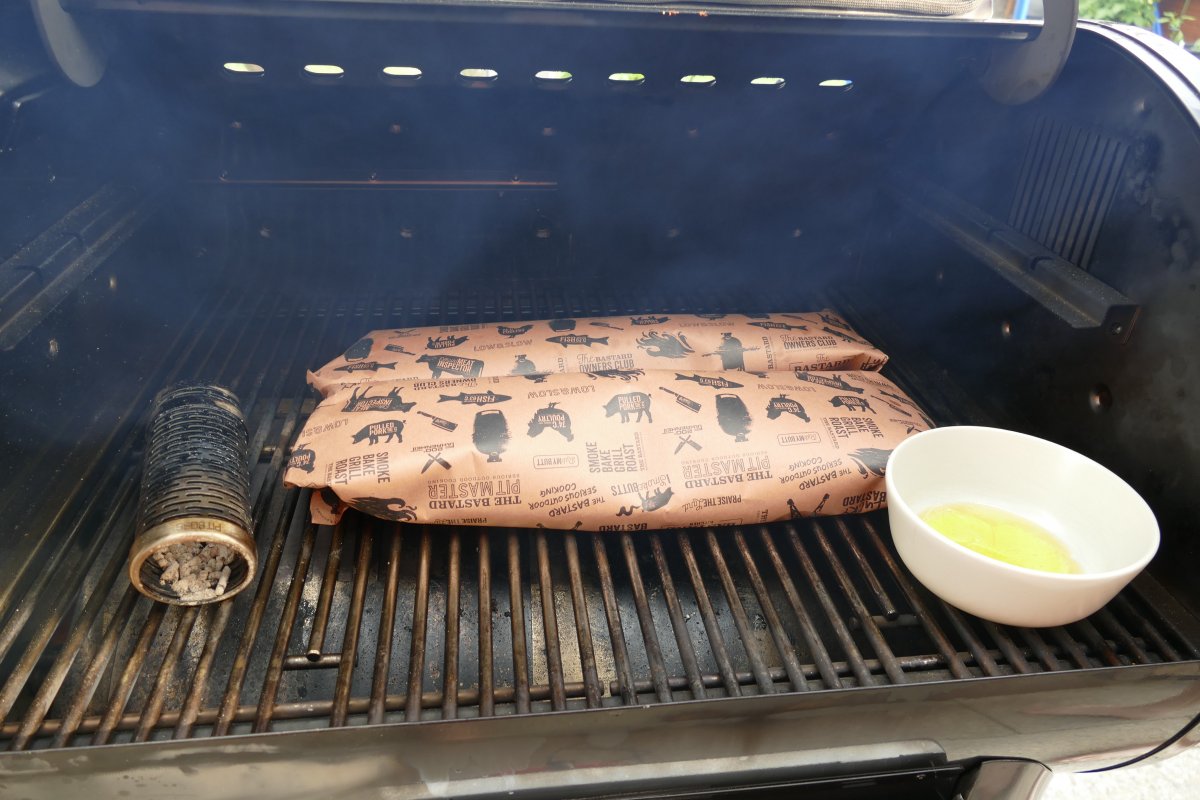Weitere 2 Stunden in Butcher-Papier eingepackt, mit etwas Apfelsaft damit es ja nicht aus trocknet.