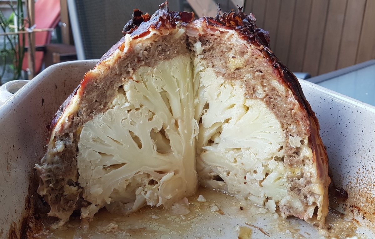 heut gab's ne Blumenkohl-Hackfleisch-Bacon-Bomb