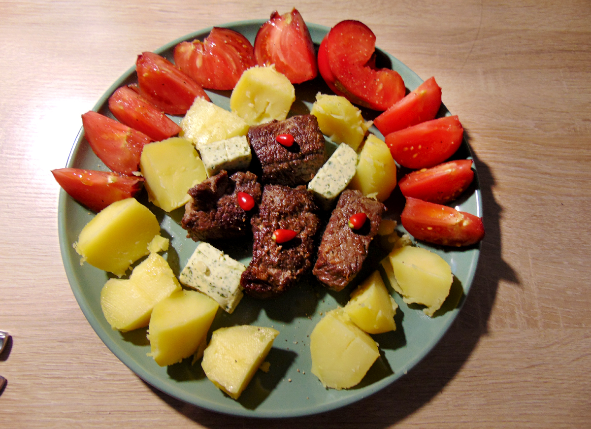 Aussie Fleischtomaten mit ein bisschen Beilage* verschmaust.