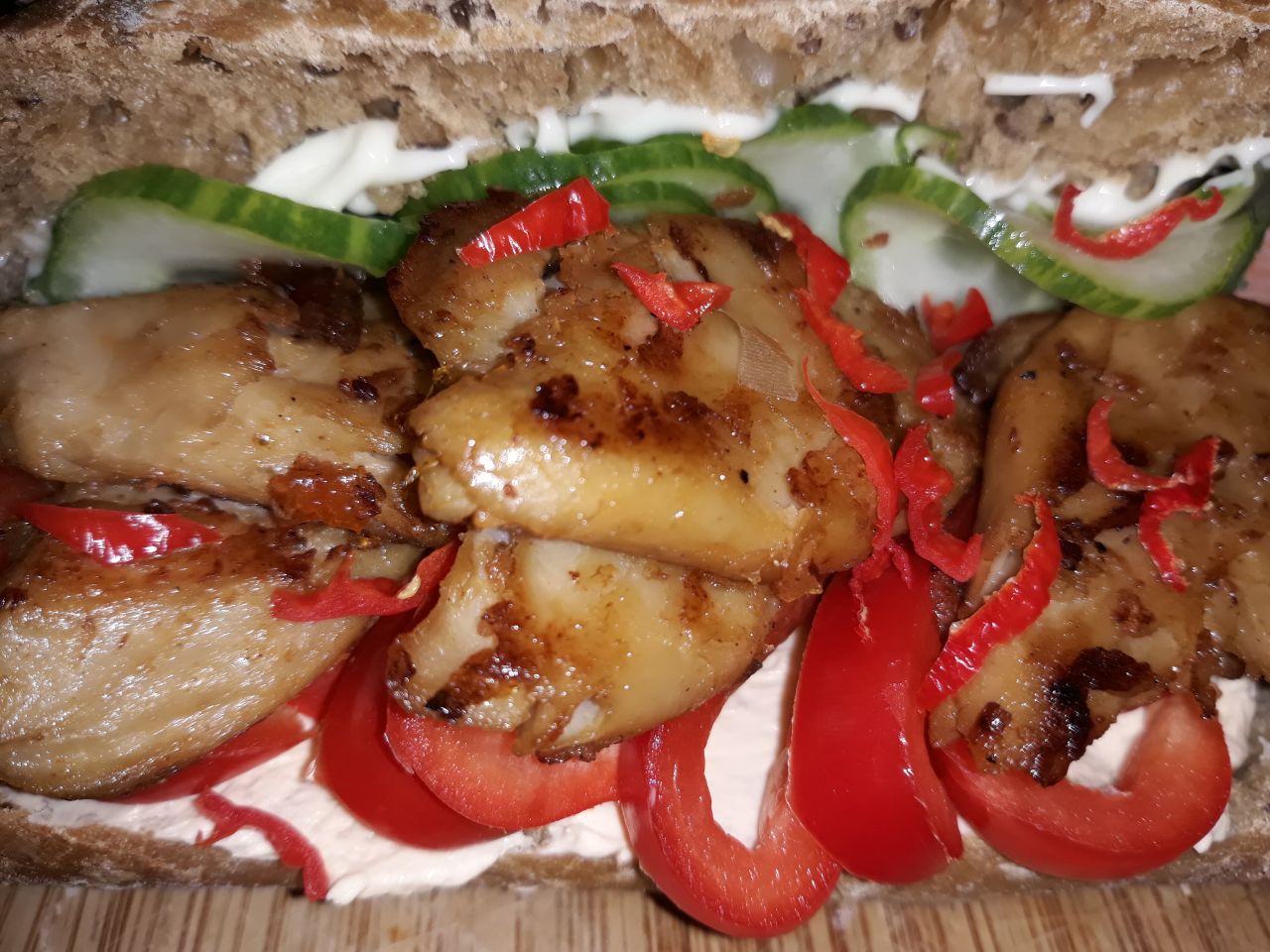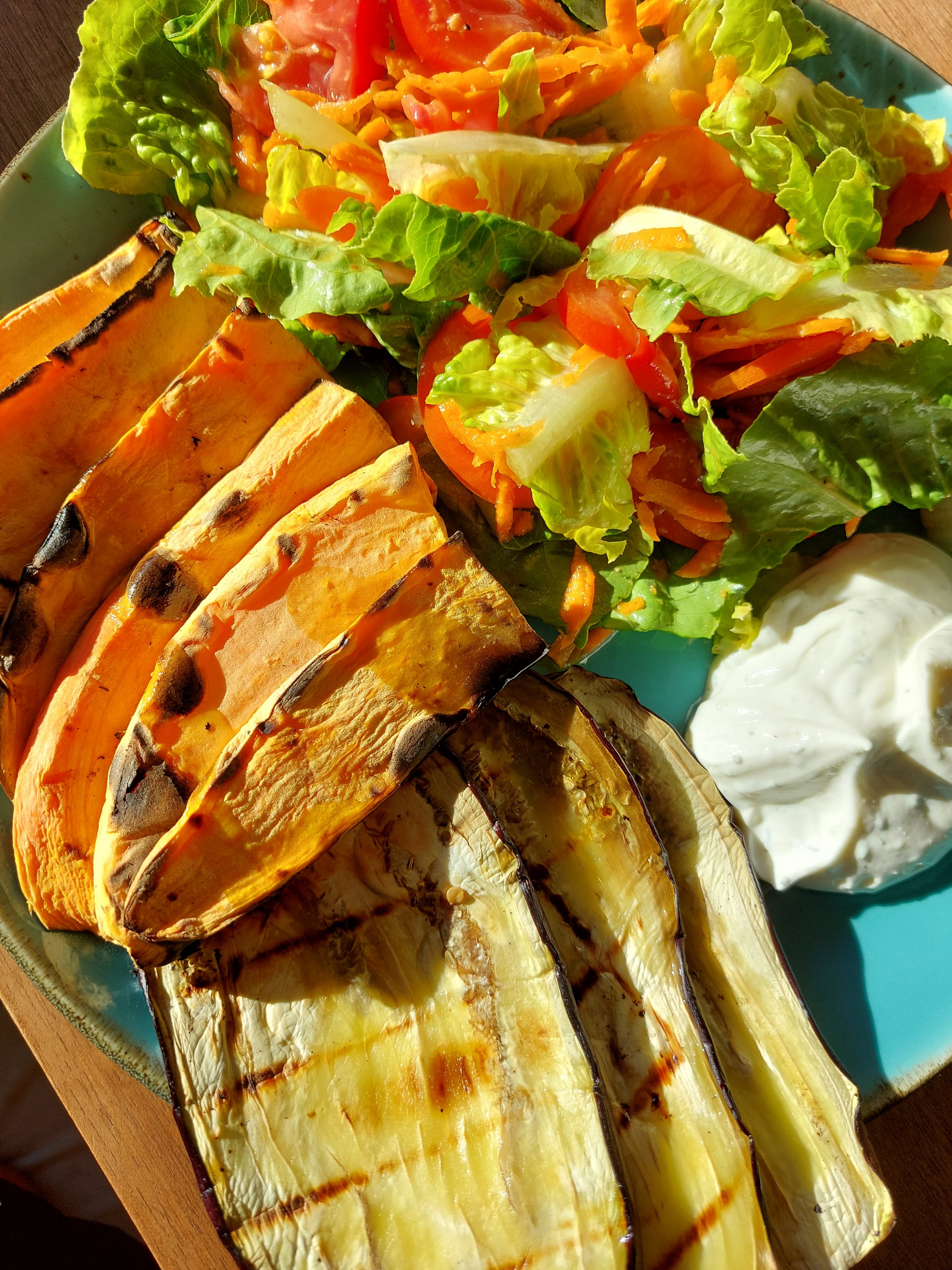 Hackbällchen, gewürzt u. a. mit selbst hergestelltem Chilipulver, Pimientos de Padrón, gebraten in Olivenöl mit frisch gemahlenem schwarzem Pfeffer und Fleur de Sel, und Tomatensalsa inklusive "Brown" Jalapeños in grünem Reifezustand.