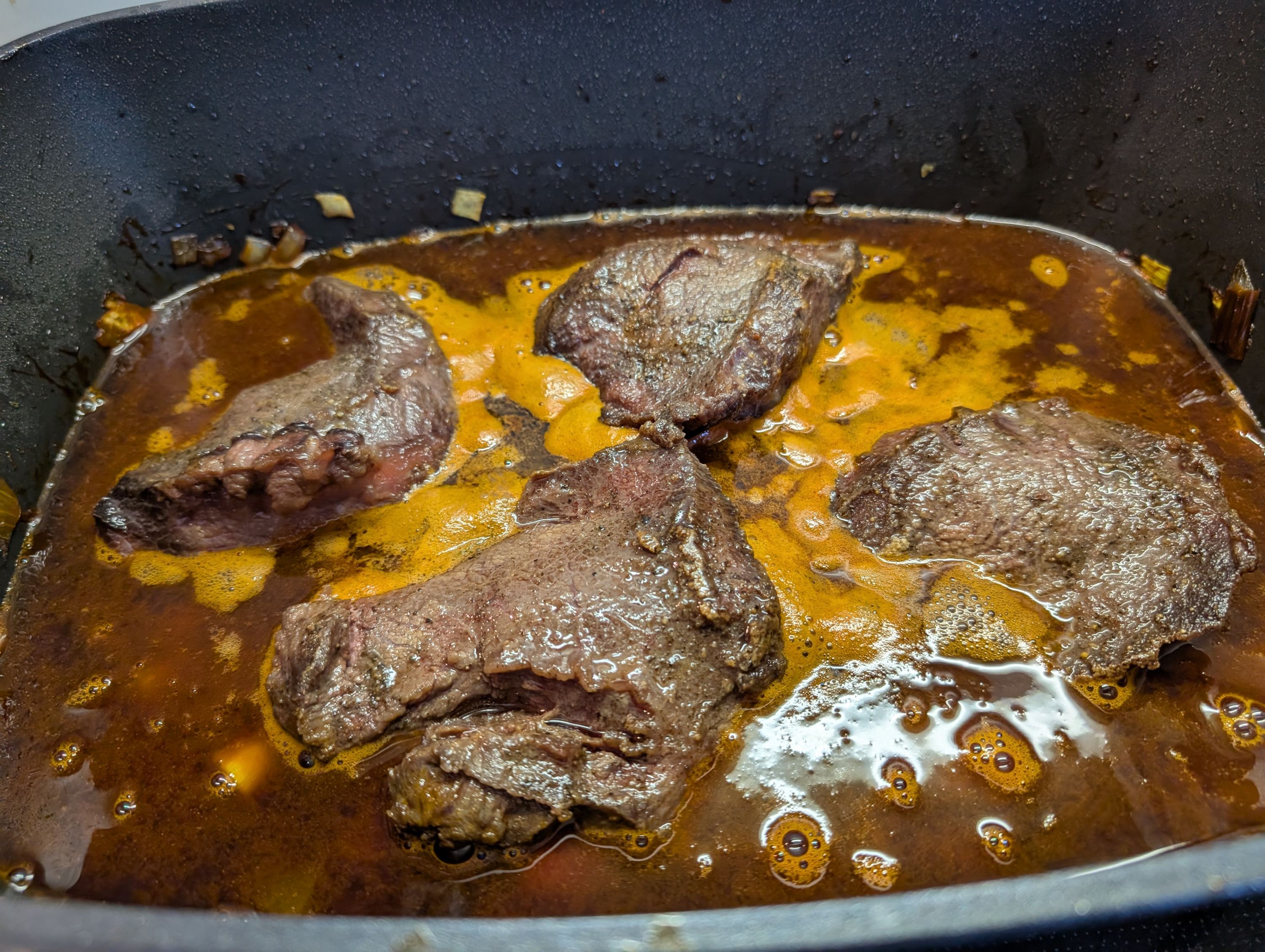 Heute ist Schmortag. Ich freue mich aufs Ergebnis und hoffe, dass die Ochsenbacken gut werden. Dazu wird es selbstgemachte Klöße und Bohnen in Zwiebeln/Butter angebraten geben. Es riecht schon so verdammt gut 🥲