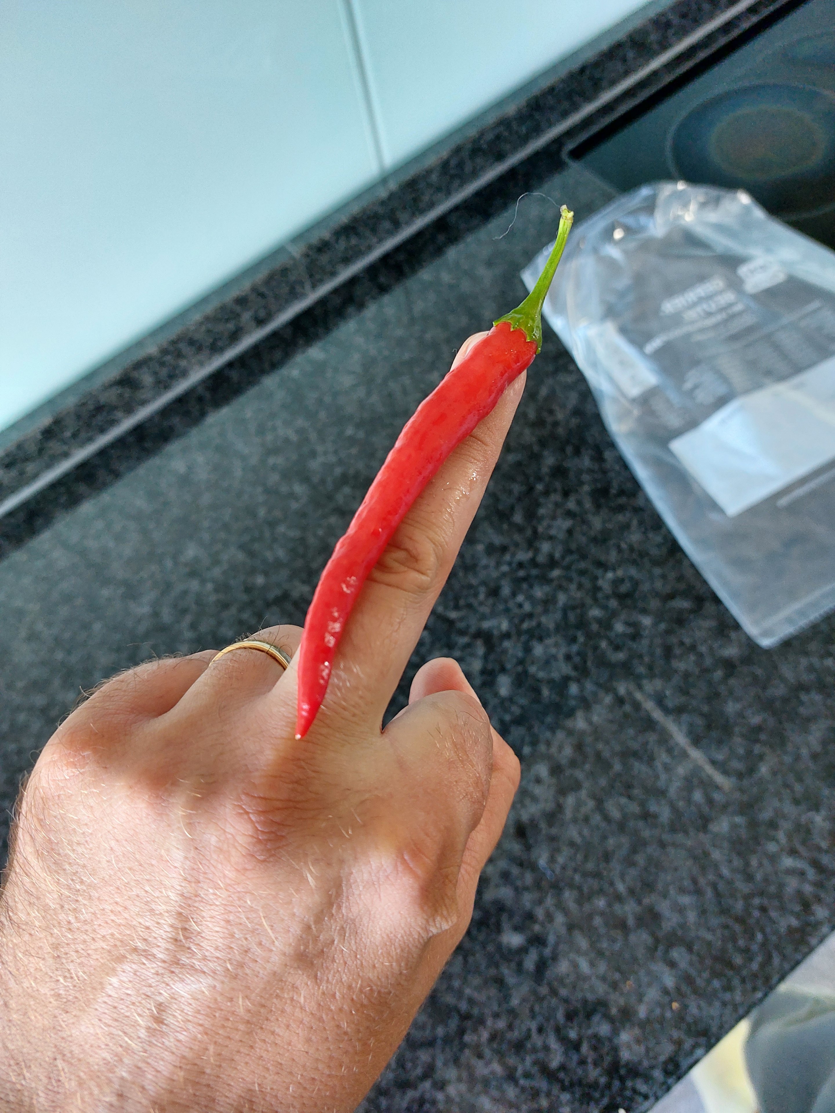 Als die Dörrte eh lief, hab ich nen Mix meiner kleinen scharfen Scheißerchen mit geteocknet für die Mühle.