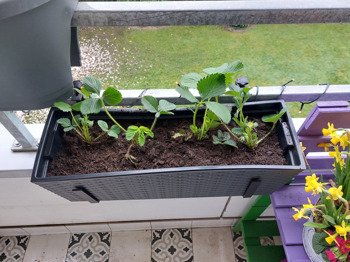 Ne ne ne, immer noch kein Interesse an meinen Monster HimbeerenHeute mal was anderes: es ging an den Naschbalkon. Mein Nachwuchsgärtner hat schon mal die Balkonkästen für die Erdbeeren vorbereitet: