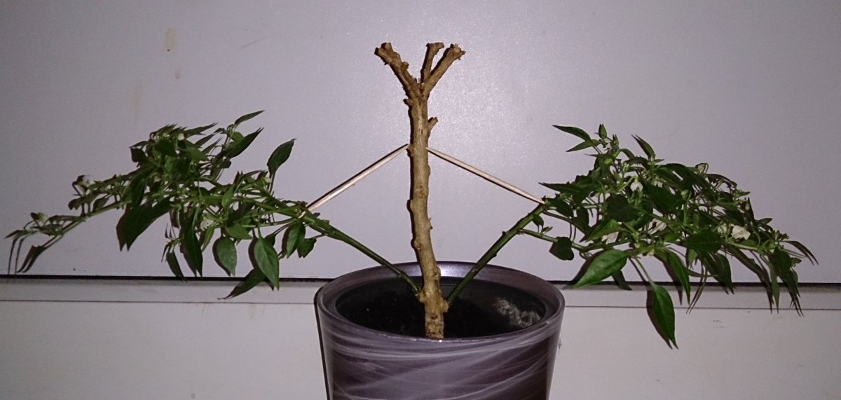 Jeweils 2 Zahnstocher zusammen gebunden und fertig :D zum wegdrücken der äste.