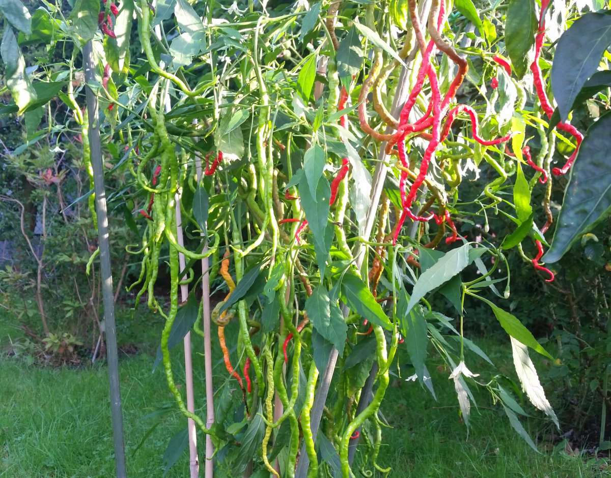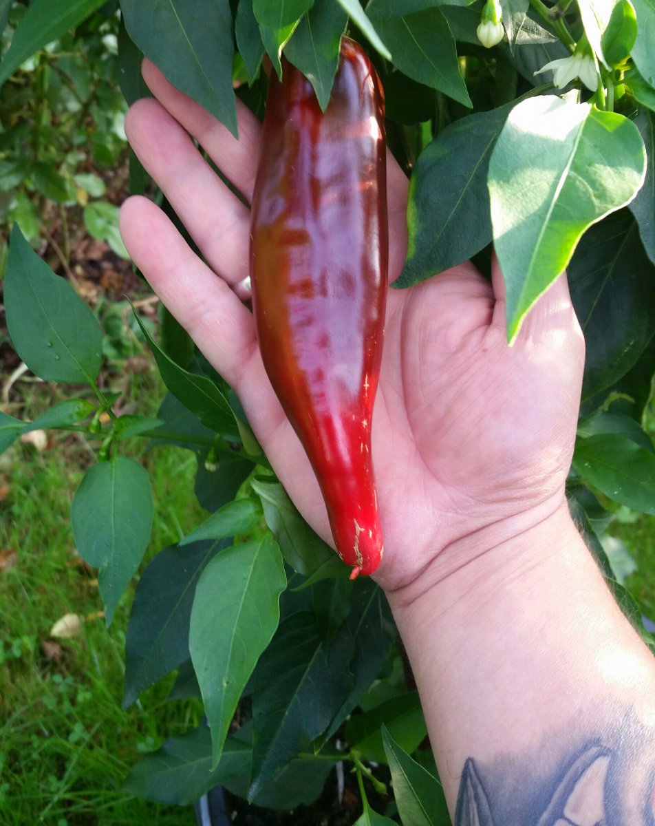 Haut zwar wahnsinnig riesige Früchte raus, aber entgegen der Sortenbeschreibung, Schärfe 0,0000:thumbsdown:.