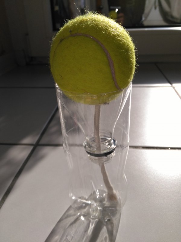 Ohne Klugschwatz, aber ein Tennisball sollte auch nur um die 150ccm3, respektive, Milliliter haben.Tennisball ist für mich keine Herausforderung. Hatte ja schon viele in 0.4 - 0.5 Liter Töpfen.