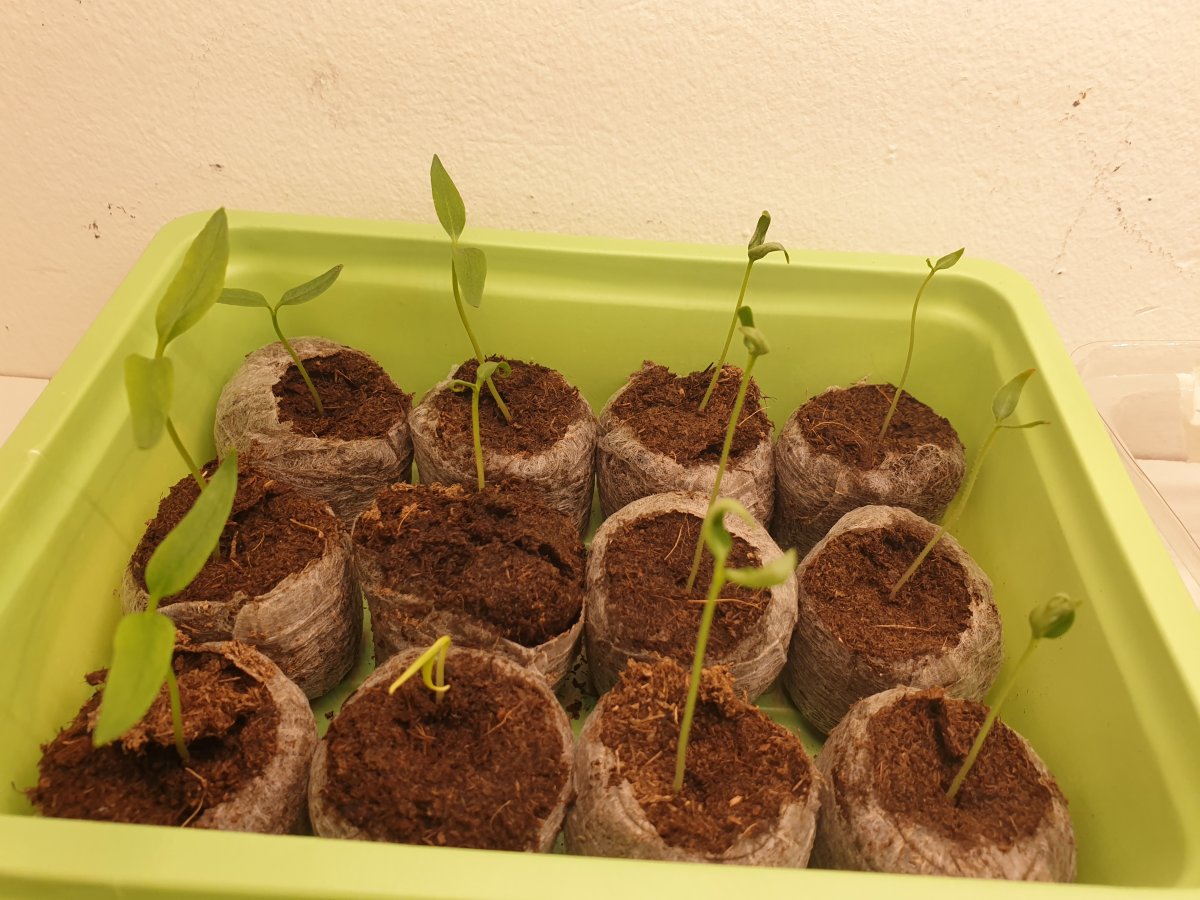 Was mich an meinen trotz Allem immer noch etwas beunruhigt, ist das manche der ersten der Blätter so verdreht aussehen, als hätten sie zu wenig Wasser.. Habe eig jetzt 2x am Tag im ml Bereich die Jiffy neu angefeuchtet. Die zeigen auch immer mehr nach oben und haben die letzten Tage auch nicht sonderlich viel Wachstum gezeigt.