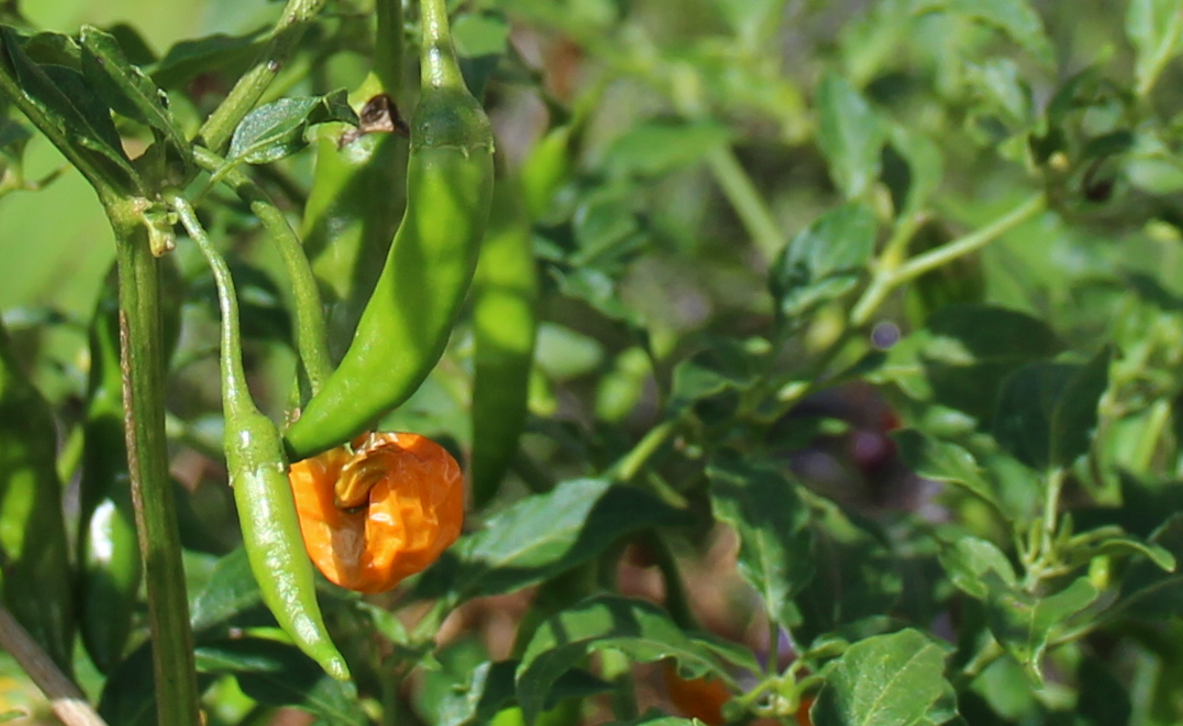 Hier meine Criolla sella, der man die Schwäche, den Kampf an Blatt & Frucht ansieht... Ui - die Arme...🤒 Trotz genügend Wasser, reifen die Früchte zum Teil verschrumpelt. Aber die Pflanze blüht weiter, gibt ihr Bestes, treibt Früchte - na seht selber...