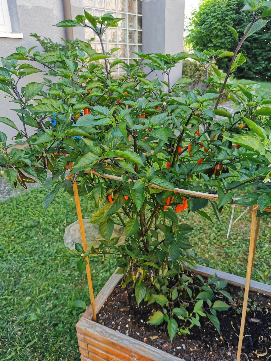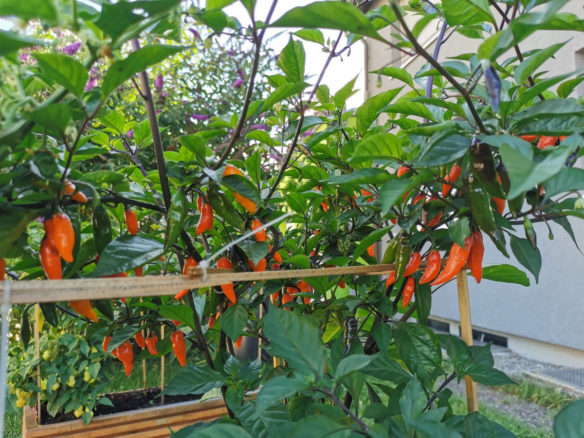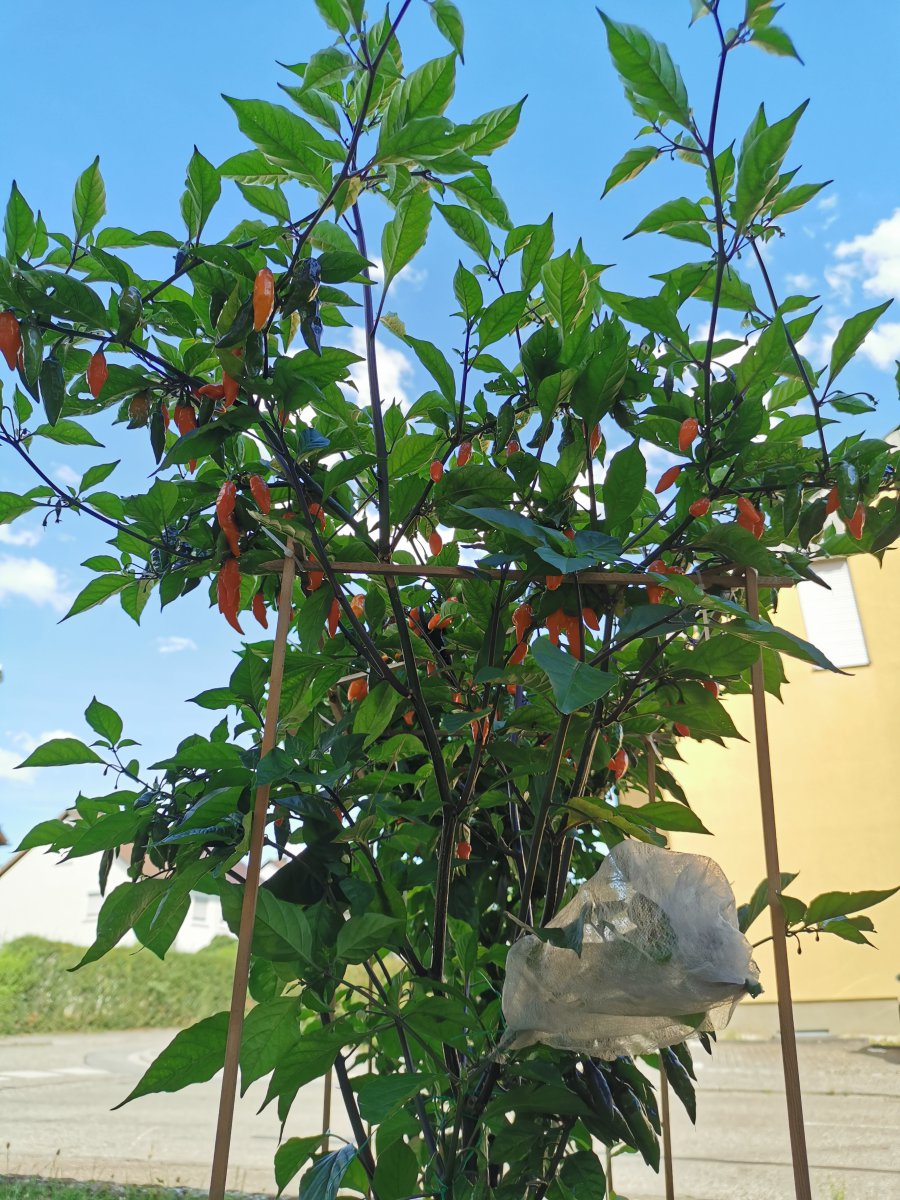 Das ist eine gute Frage, es sind wirklich sehr viele, ich habe insgesamt knapp 40Pflanzen, viele tragen gut. Ich denke einen Großteil der Limon x PdN werde ich trocknen und zu Pulver verarbeiten. Sie schmecken wirklich sehr gut, fruchtig chinensig, allerdings nicht ganz so extrem fruchtig wie z.B. die Madame Jeanette, die ich auch habe, mit der möchte ich fruchtig-exotische Soße machen. Die Limon x PdN hat auch deutlich mehr Kerne. Ich esse sie ab und zu frisch, zu einem Gericht, z.B. zu einem Brot, einer Pizza, etc, finde sie zum vespern aber schon grenzwertig scharf. Da kommen natürlich kaum welche weg, im Verhältnis dazu wie sie nachwachsen.