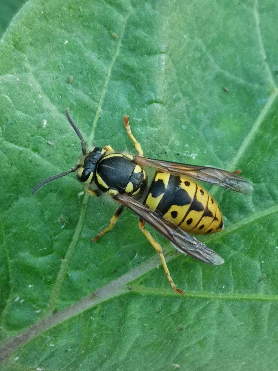 Vespula germanica? Ich hab natürlich gerade fleißig nach Fotos von V. vulgaris, V. germanica und Dolichovespula saxonica gegoogelt...
