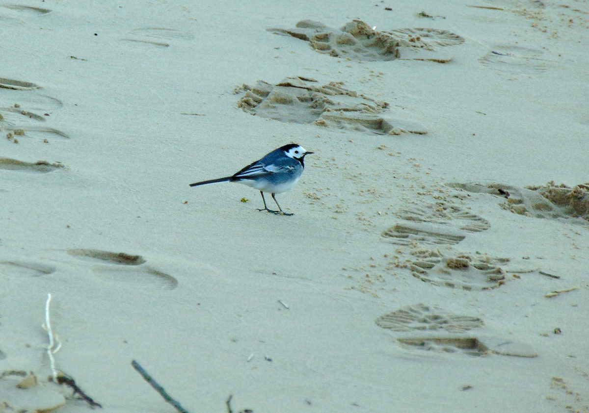 Am Strand vor dem Hotel lief eine einsame Bachstelze umher. Sie fühlt sich wohl eher als Flussstelze (ist doch die Weser beileibe
