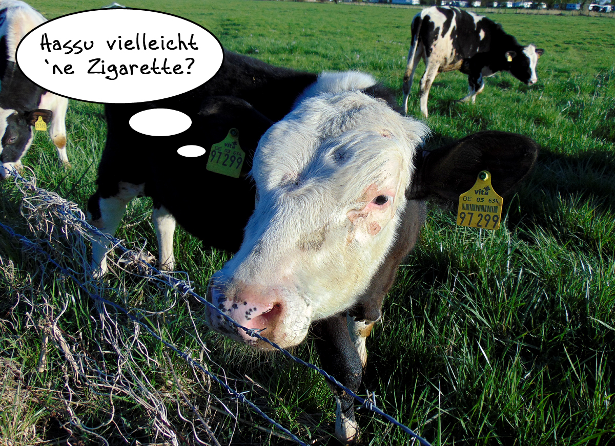 Müsste man doch mal den Tierarzt zu Hilfe holen! Ist bestimmt nicht angenehm für das Kalb!