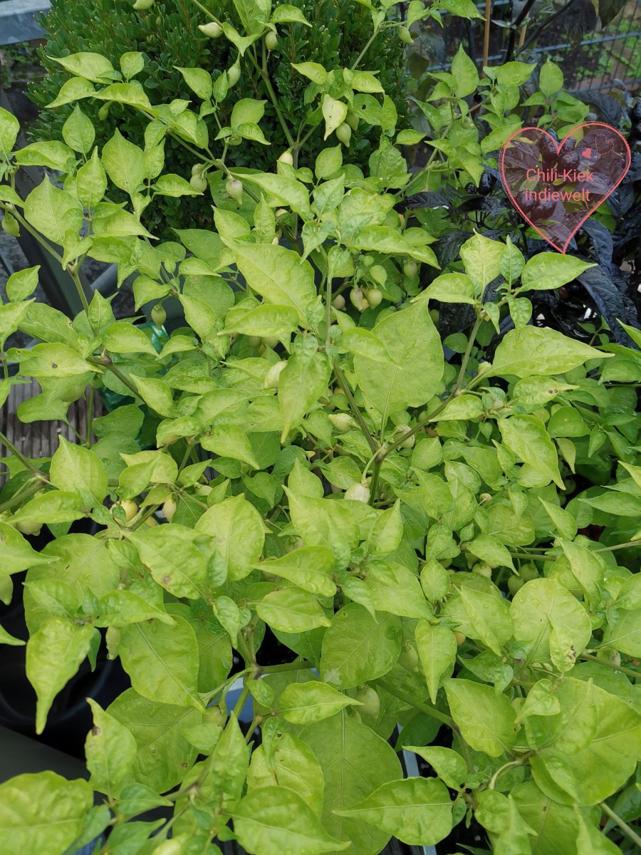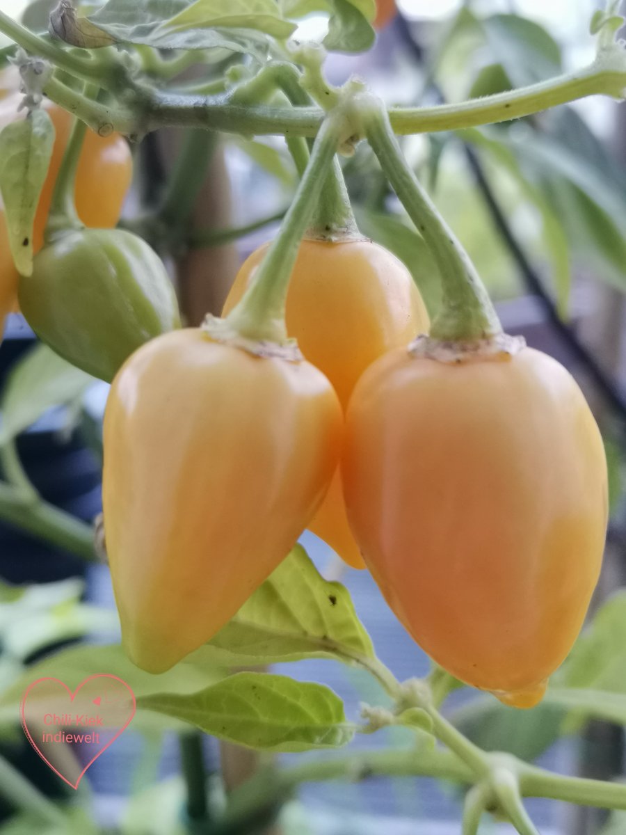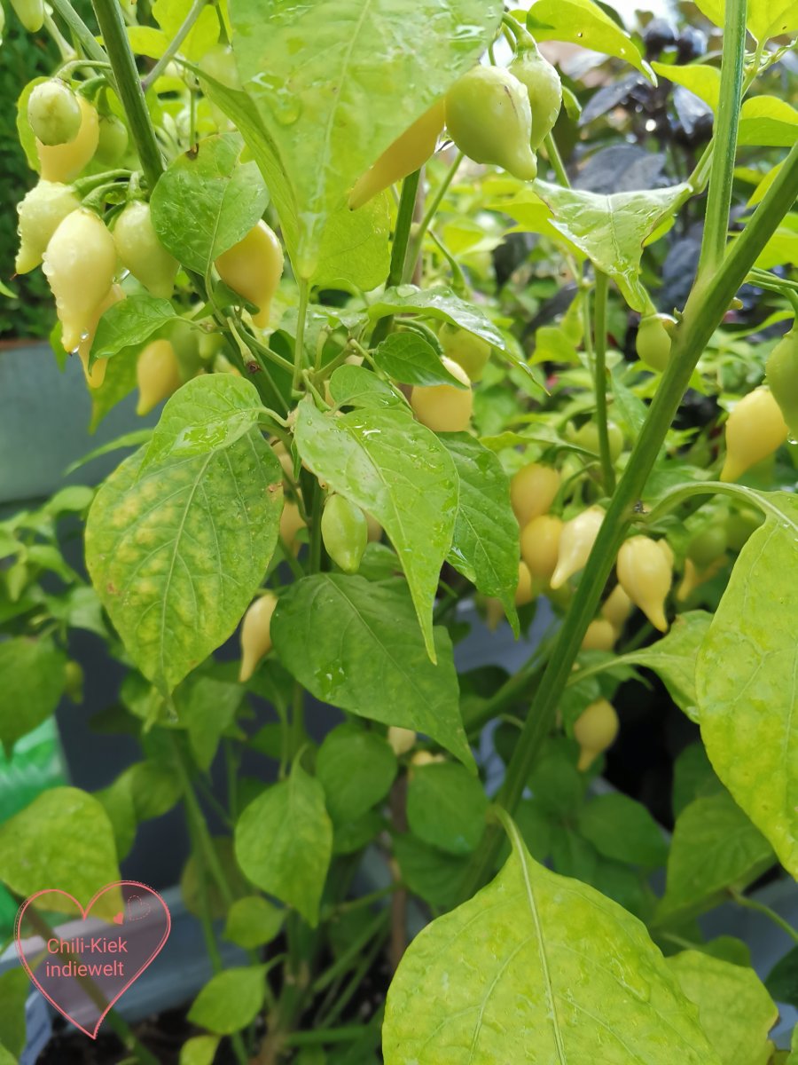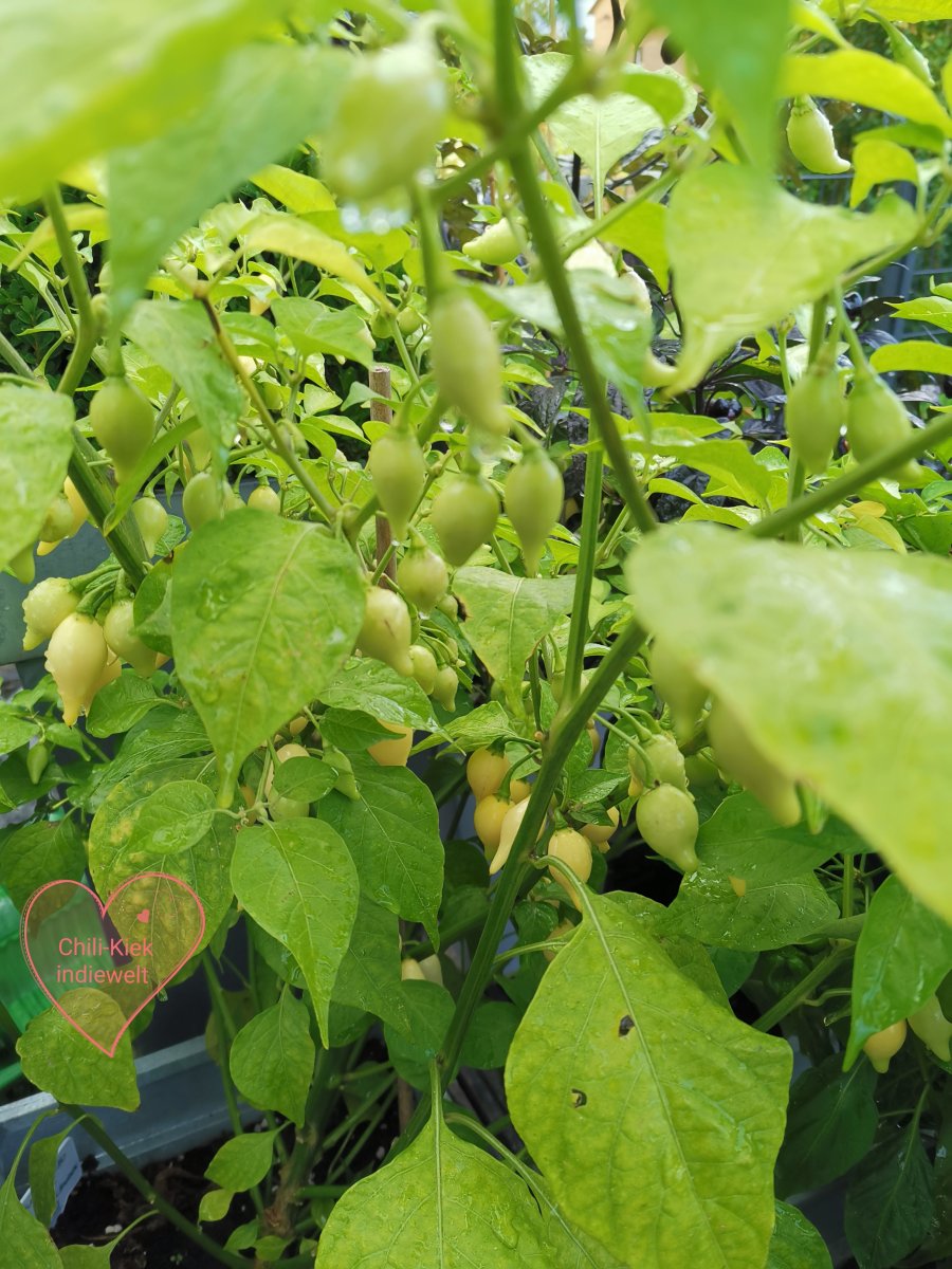 NuMex Trick or Treat mit der daneben stehenden Chupetinho White verkreuzt hat. Bei beiden handelt es sich um eine Capsicum Chinense.