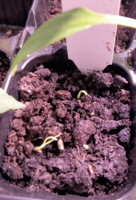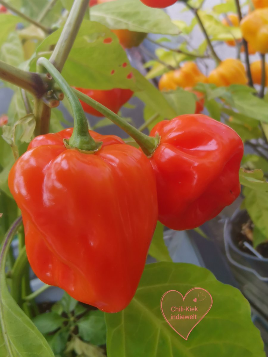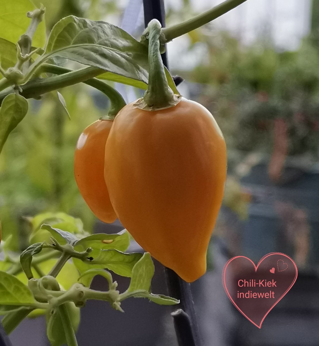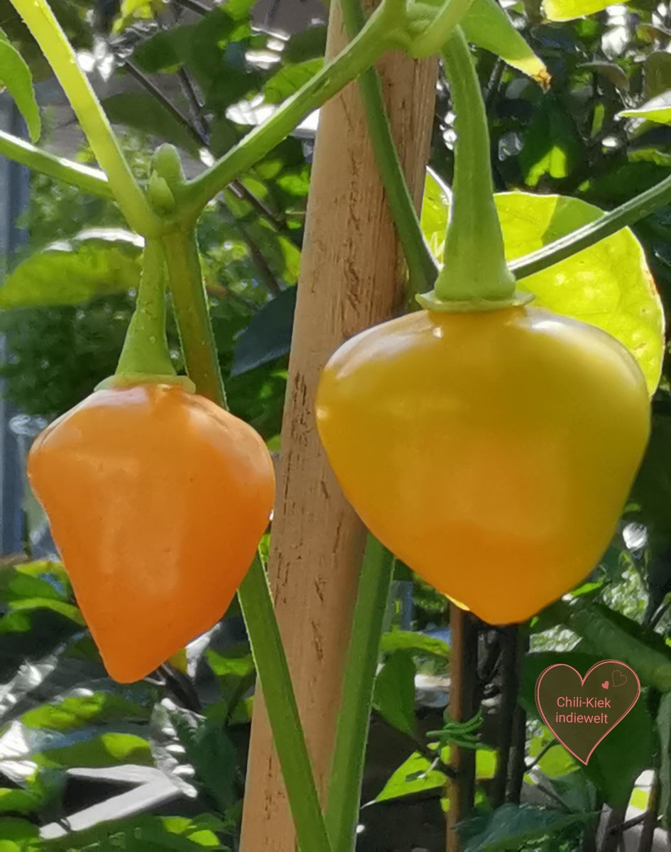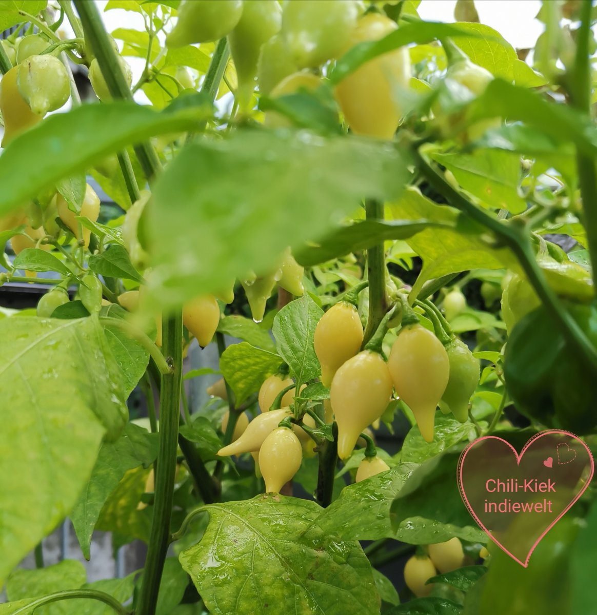 NuMex Trick or Treat mit der daneben stehenden Chupetinho White verkreuzt hat. Bei beiden handelt es sich um eine Capsicum Chinense.