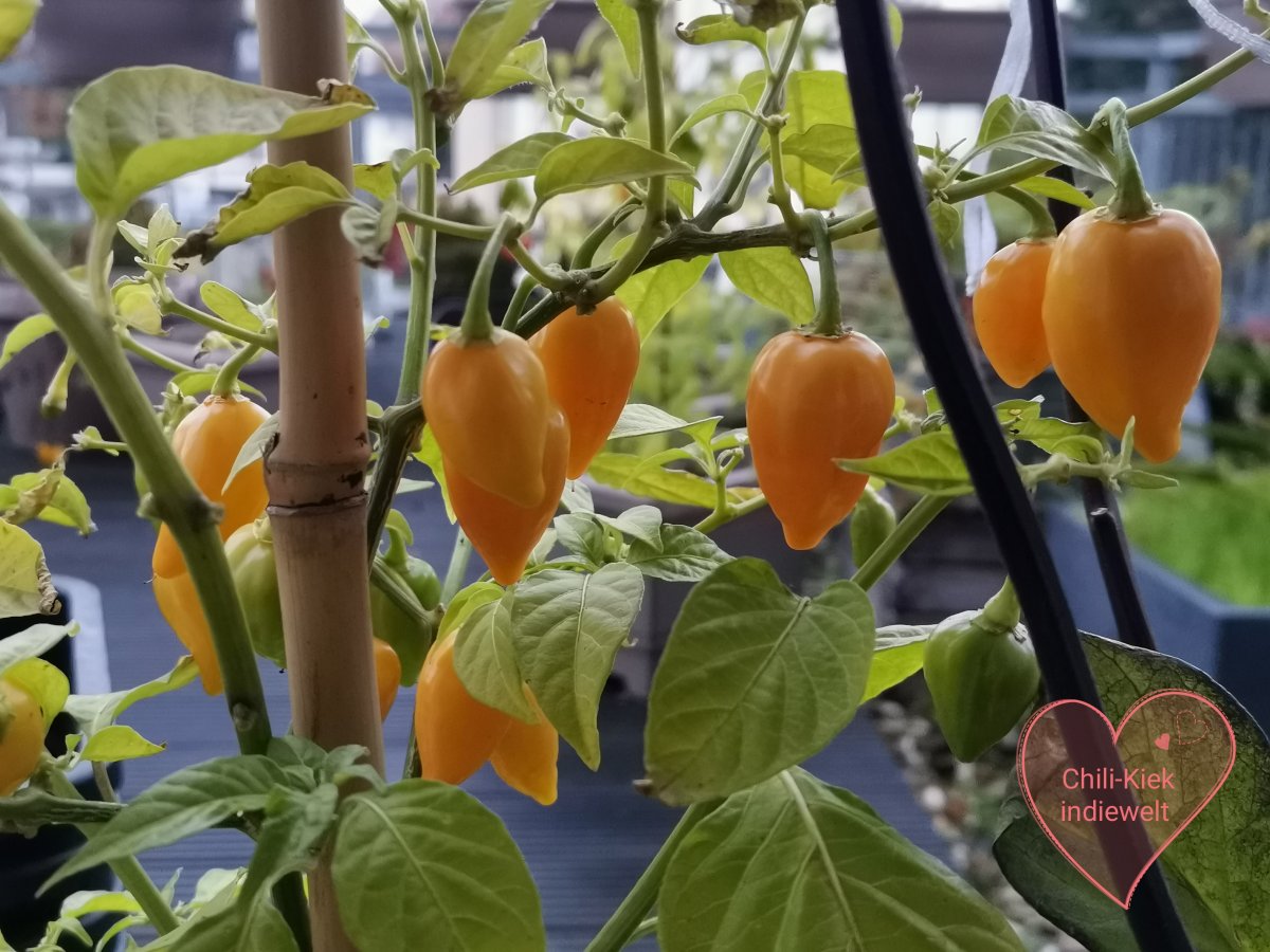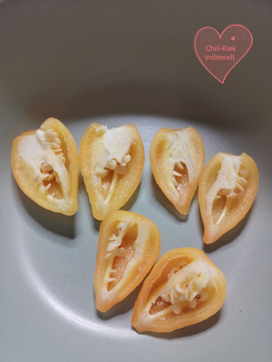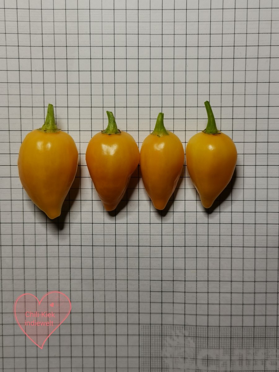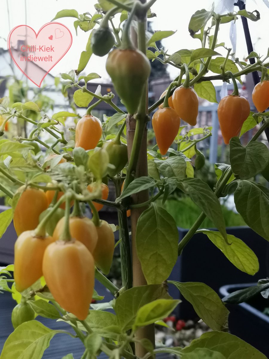 Was die Fruchtform betrifft, fände ich eine Tendenz mehr in Richtung NuMex sehr schön (typische, faltige Habanero-Form). Ob die F2 orange-, apricotfarbene und/oder weiße Beeren hervorbringt, wird sich zeigen. Für mich tritt die Farbe hinter dem Kriterium Aroma/Schärfe zurück. Okay, Orange und Apricot mag ich eigentlich lieber... ;-)