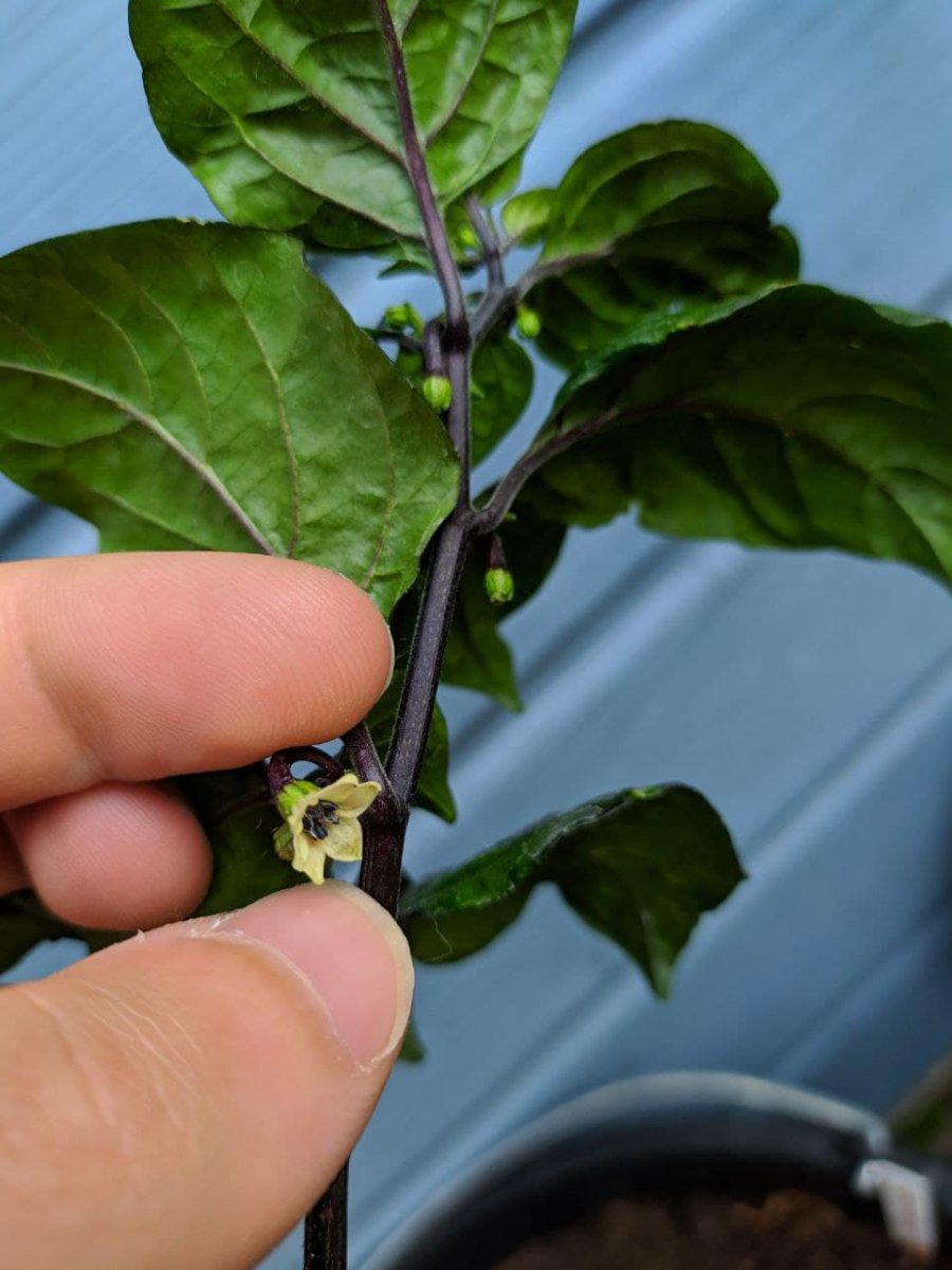 Und dann tippe ich hier mal auf eine C. annuum bei meiner Chili im grünen Töpfchen! Die andere Roulette bildet noch keine Blüten, kommt dann sicher nach dem Umtopfen.