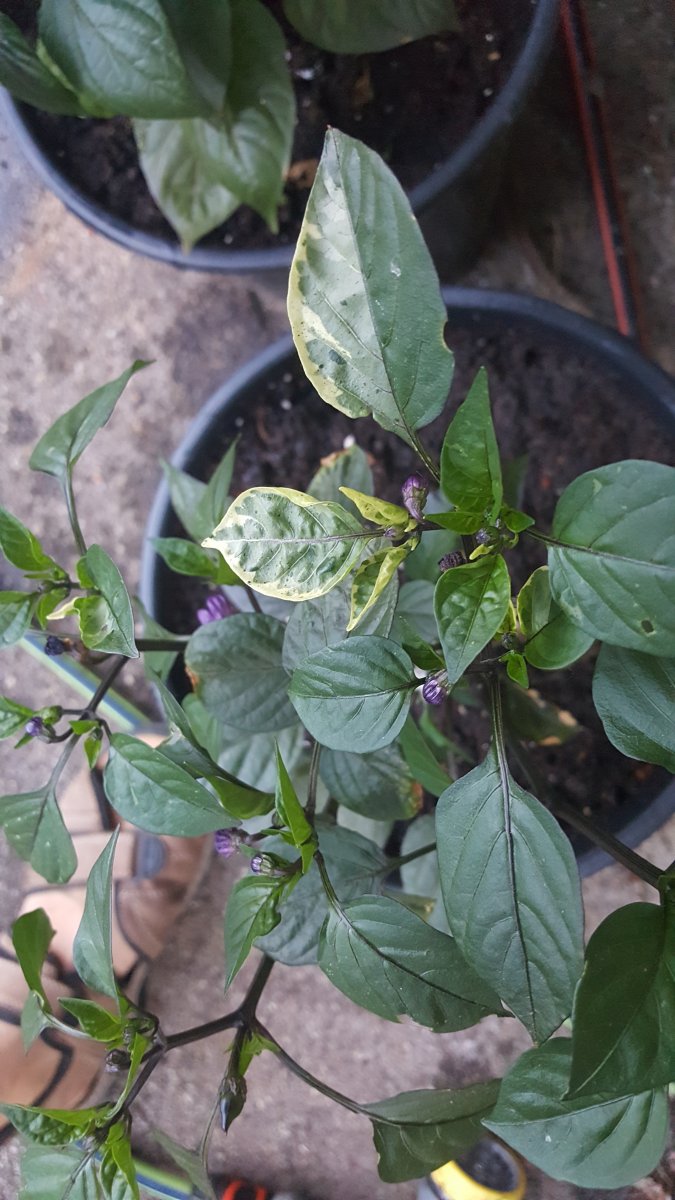 Was mich an einer Chinense ein wenig zweifeln ließ, ist die wirklich extrem dunkle Farbe. Jedes Blatt, das neu wächst, ist bereits tiefdunkel. Ebenso die Zweige. Auch indoor schon. Das kenne ich von meinen Chinensen bislang nicht. Ich hatte im letzten Jahr aber auch keine Annuum in einem solchen speziellen Farbton. Der Wuchs passt wiederum eher zu einer Chinense.So nun zu meinem Problem, ich vermute Rouletti 1 ist ein kuckuck oder verkreuzt hätte selbst auch auf chinense getippt sollte aber eigendlich ne Annuum sein.