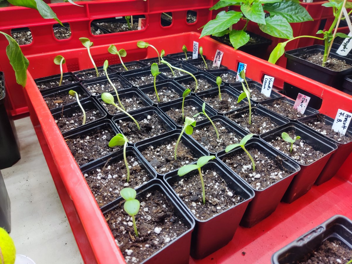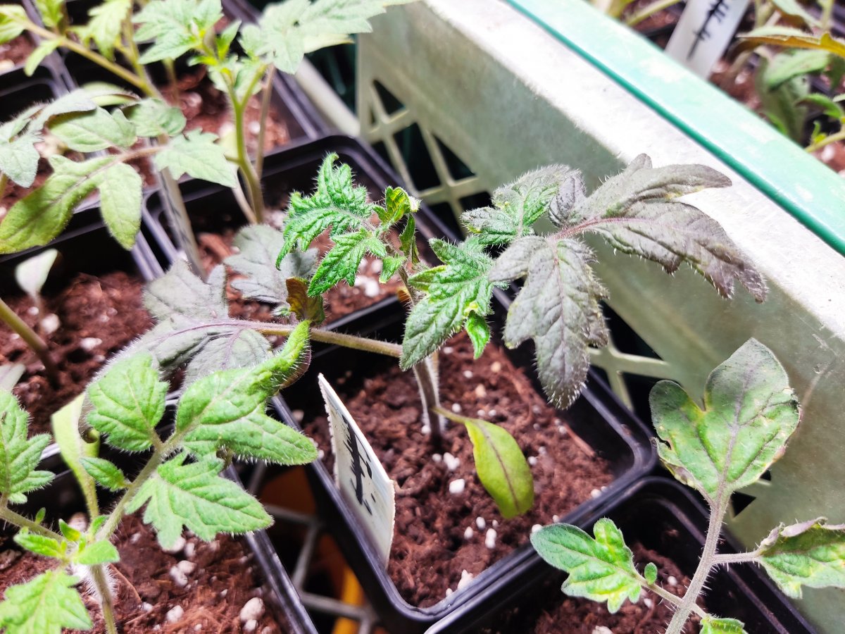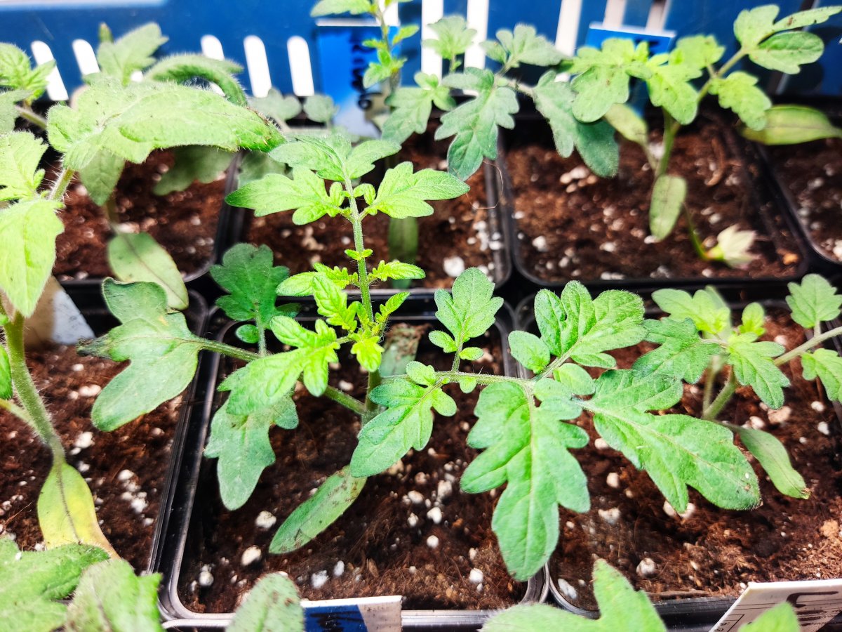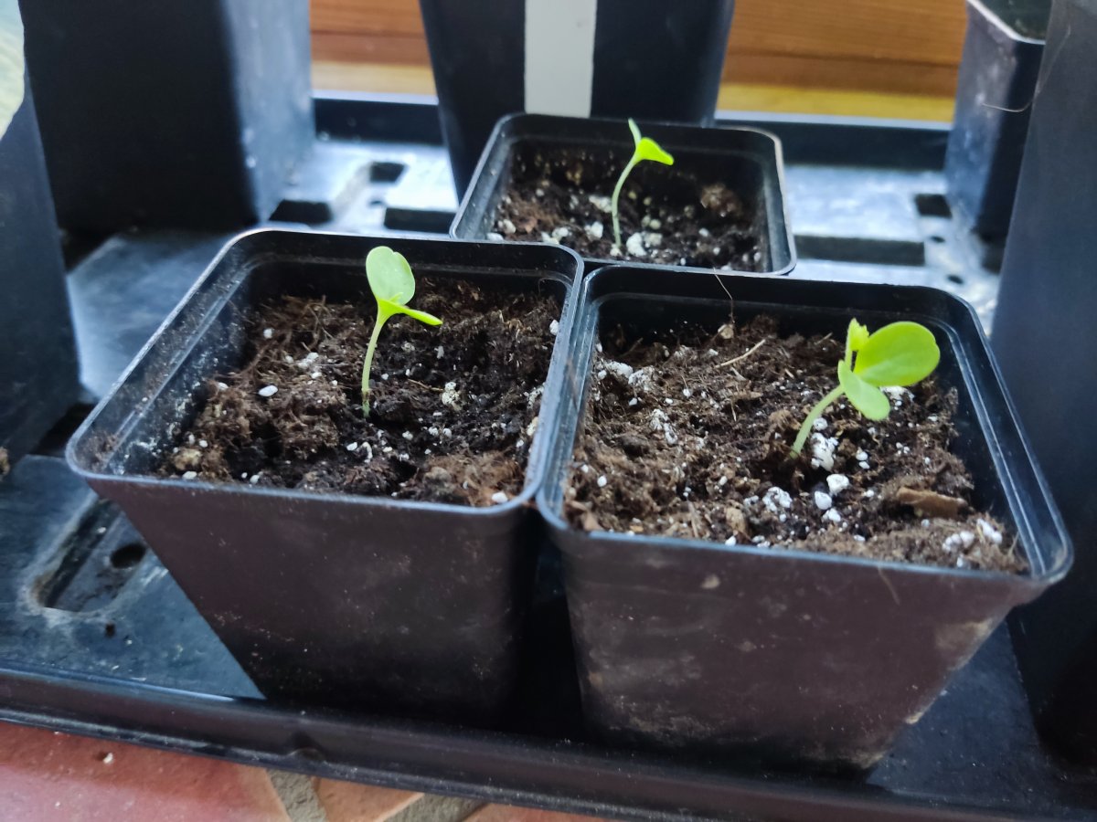 Bei den Tomaten war es dringend nötig diese zu vereinzeln, das war wirklich überfällig. Teilweise haben sie schon gelbe Blätter bekommen, aber sie machen sich mittlerweile schon wieder ganz gut. Sie stehen jetzt in kleinen 7x7 Töpfen. Da sie aber so schnell wachsen, haben sie dann Mitte Mai eine ganz gute Größe. Mit den Tomaten starte ich mittlerweile extra sehr spät, da sie mir sonst den Keller zuwuchern 🤷‍♂️