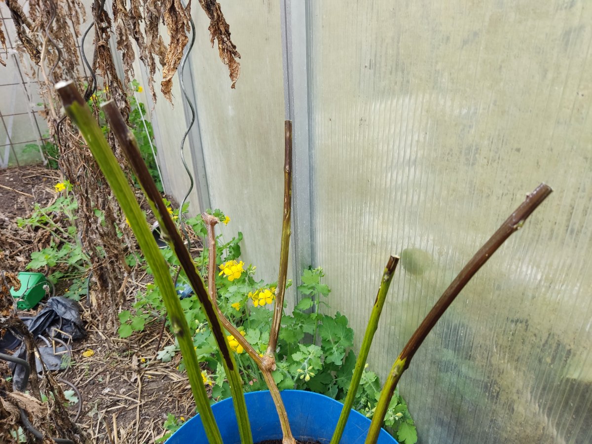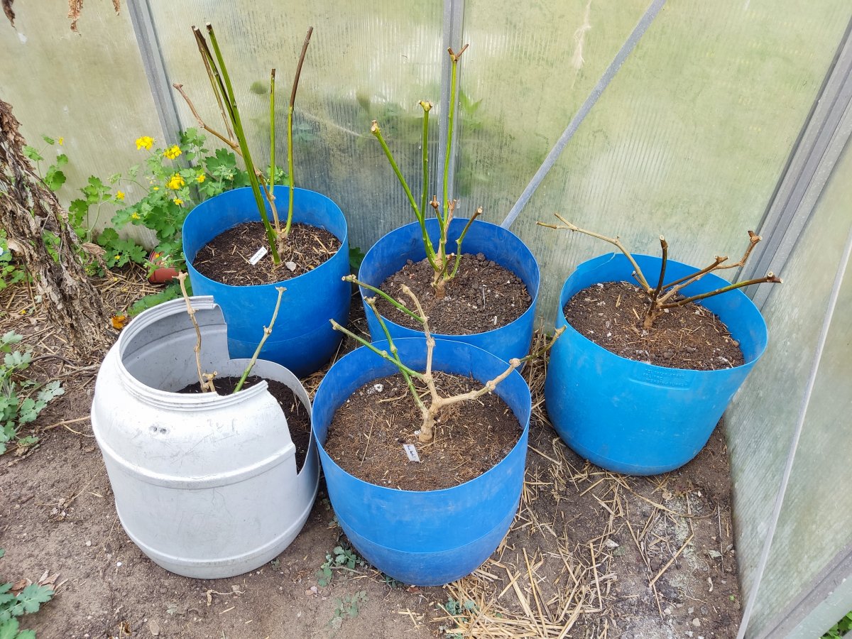 Heute habe ich die Rocotos aus dem Winterquartier geholt und sie in Topfgarten 2 in das Gewächshaus verfrachtet. Einige davon scheinen es nicht geschafft zu haben, da sie braune Stiele und teilweise sogar Schimmel hatten. Waren wohl zu feucht? Ein paar schauen aber noch vielversprechend aus. Im Gewächshaus sollen sie sich erstmal an das "Draußen" gewöhnen. Da die Scheiben schon sehr alt und trüb sind, hoffe ich, dass sie so ein bisschen Sonnenschutz aufbauen können, bevor es in ein paar Wochen komplett nach draußen geht. Außerdem wird das Gewächshaus durch einen riesigen Walnussbaum sehr beschattet :)
